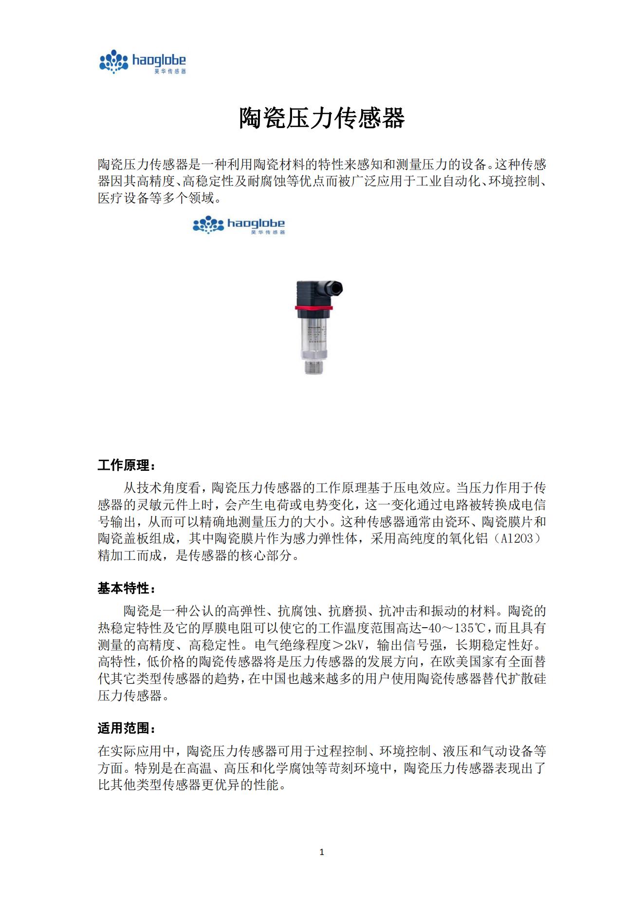 陶瓷壓力傳感器